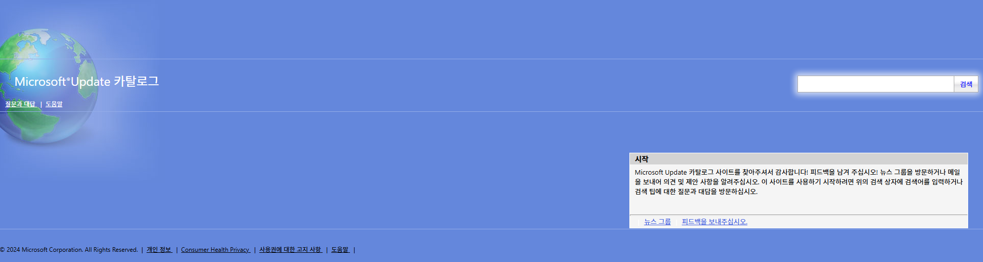 - 업데이트 기록에 표시된 KB 번호를 검색 후 다운로드.