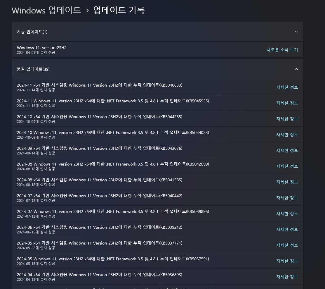- 설정 메뉴에서 업데이트 및 보안 → 업데이트 기록 보기로 이동하여 상세 정보를 확인하세요.