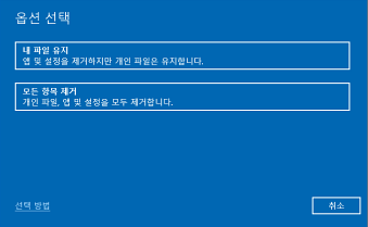 - 모두 제거: 모든 파일, 앱, 설정 삭제(최초 상태로 복구).