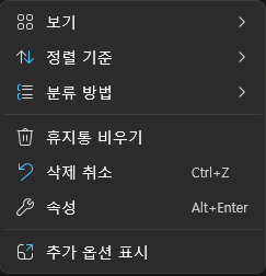 - 휴지통 메뉴 선택.