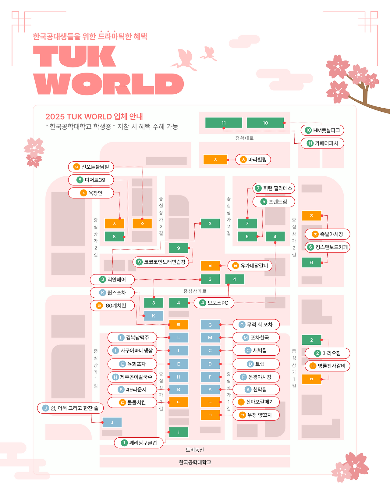 이 외에도 학교 근처에는 총학생회와 연계된 다양한 가게들이 있어, 학생증 제시로