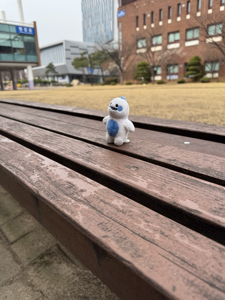 학교 중앙 벙커 근처 벤치에서 여유롭게 휴식!